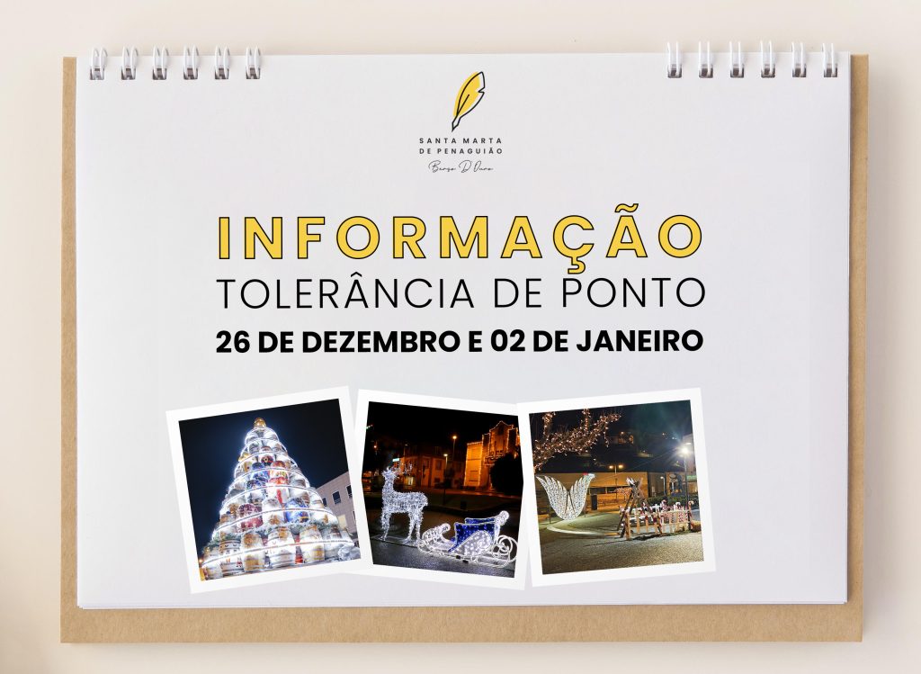 Os serviços da Câmara Municipal de Santa Marta de Penaguião vão estar encerrados nos dias 26 de dezembro e 02 de janeiro, na sequência da tolerância de ponto concedida pelo Governo aos funcionários e colaboradores da administração pública.
